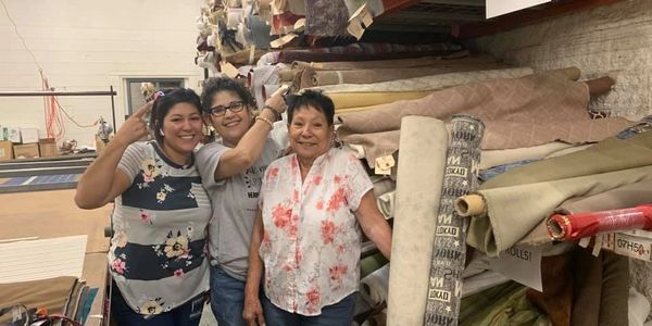 Mariana is the other lady in the photo and a very important lady. She got us started as she herself had a total of 50 years in the industry alone. She passed May 2021, but we learned so much from her to keep upholstery and sewing alive and well. We are forever grateful for her teachings and continue to her legacy as second and third generations.